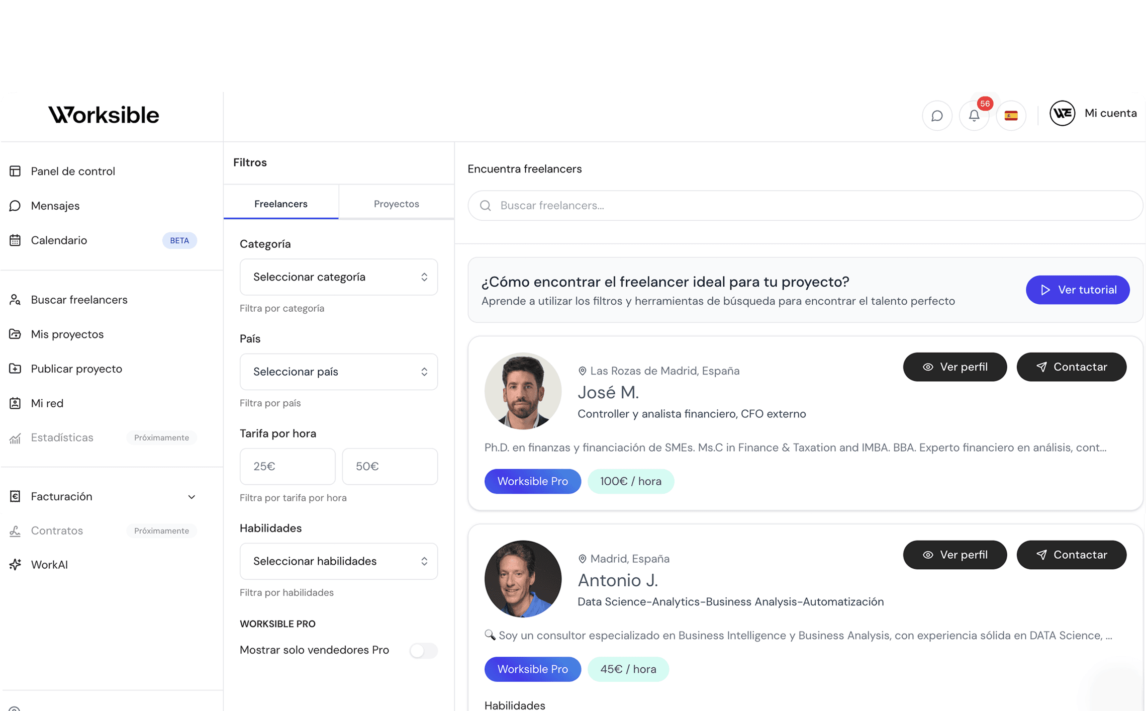 ¿Qué tipo de talento puedo encontrar en Worksible?